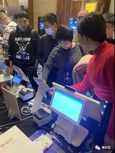 场内的会议分享精彩纷呈,场外的产品体验也是热火朝天,小编在场外展区看到,每日付公司的产品功能受到了业界人士的一致好评,纷纷上前体验使用。